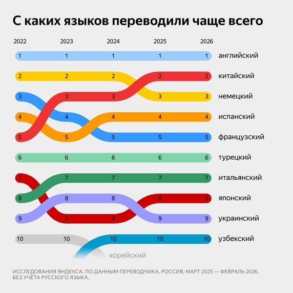 Китайский обогнал немецкий, став вторым по популярности языком в Яндекс Переводчике