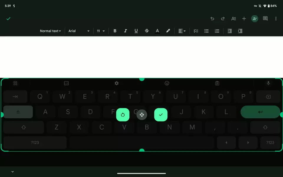 Но этим дело не ограничивается. Google также предусмотрела регулировку ширины, позволяющую занимать не более трети экрана или половину, три четверти и более. Кроме того, можно даже перемещать клавиатуру по экрану в соответствии со своим стилем набора текста.