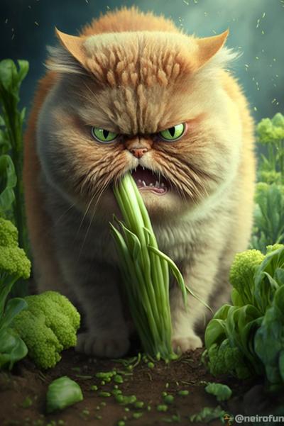 Запрос «Счастья полные штаны» в ответ получил картинку с изображением мальчика в джинсах, набитых сладостями. На выражение «Голод не тётка» нейросеть нарисовала хмурого кота с зеленью в пасти.