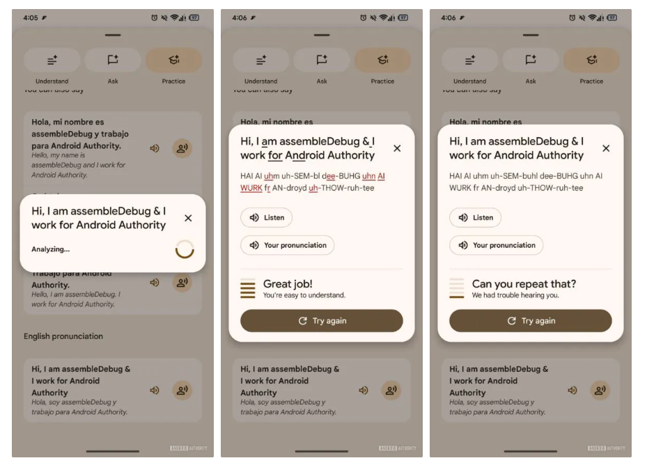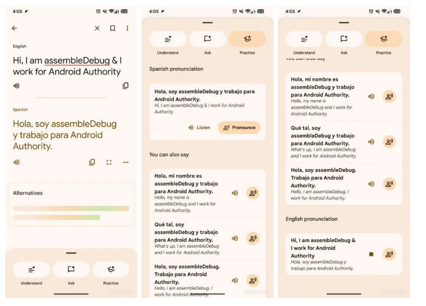 Фича в разработкеВ Google Translate может появиться функция помощи в произношении иностранных слов. Речь идет о режиме Practice, что сейчас находится в разработке. Раньше приложение позволяло лишь прослушать перевод.