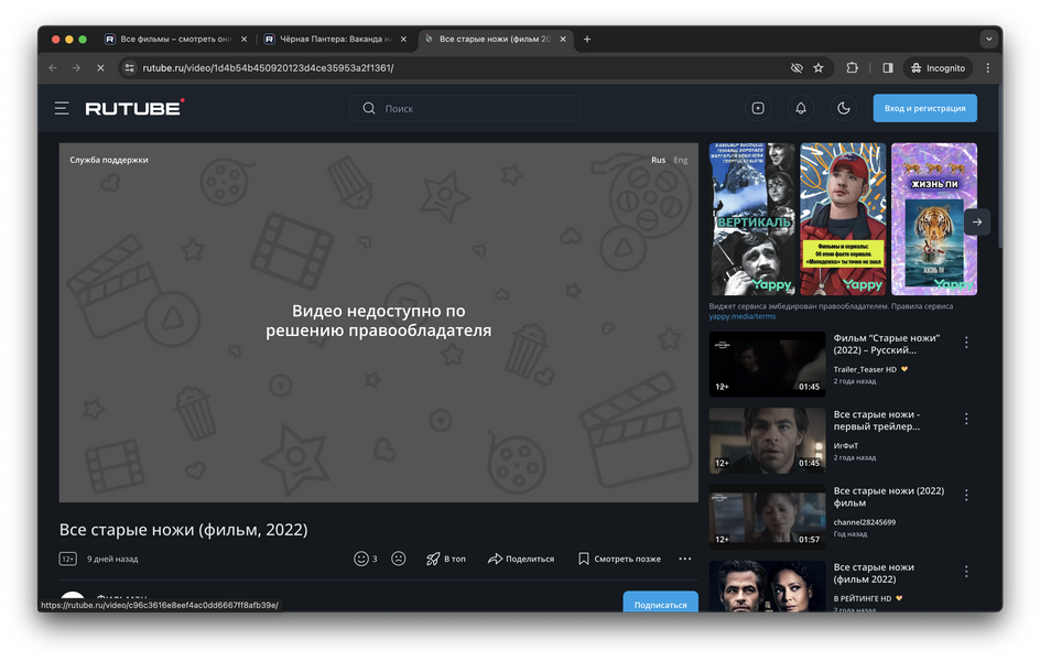 Этот шаг, скорее всего, является попыткой RuTube «усидеться на двух стульях»: избежать судебных исков со стороны западных правообладателей, но при этом дать людям необходимый контент.