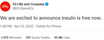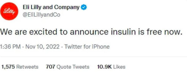 Но одним из драматичных моментов стало появление аккаунта якобы фармацевтической компании Eli Lilly & Company, которая, в частности, производит инсулин. В США это дорогое удовольствие.
