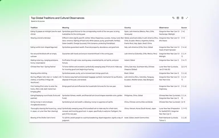 Новая функция позволяет создавать таблицы на основе заметок, документов или расшифровок созвонов. Например, можно собрать данные из нескольких научных статей и отсортировать их по годам, количеству участников или другим параметрам.