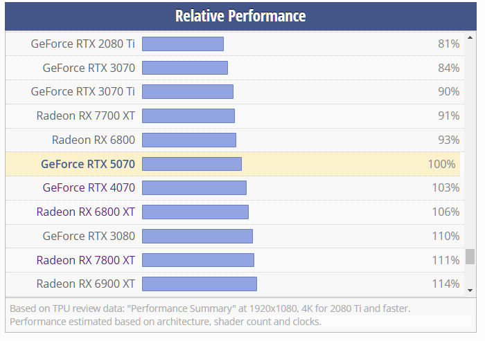 Все в пределах ожидаемогоПортал TechPowerUp опубликовал предварительные оценки производительности видеокарт RTX 5070 Ti и RTX 5070.