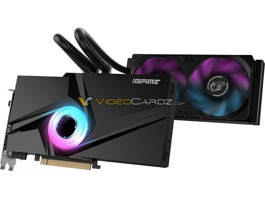 А вот модель Colorful GeForce RTX 3090 Ti iGame Neptune более компактная, так как получила систему жидкостного охлаждения с тремя вентиляторами.