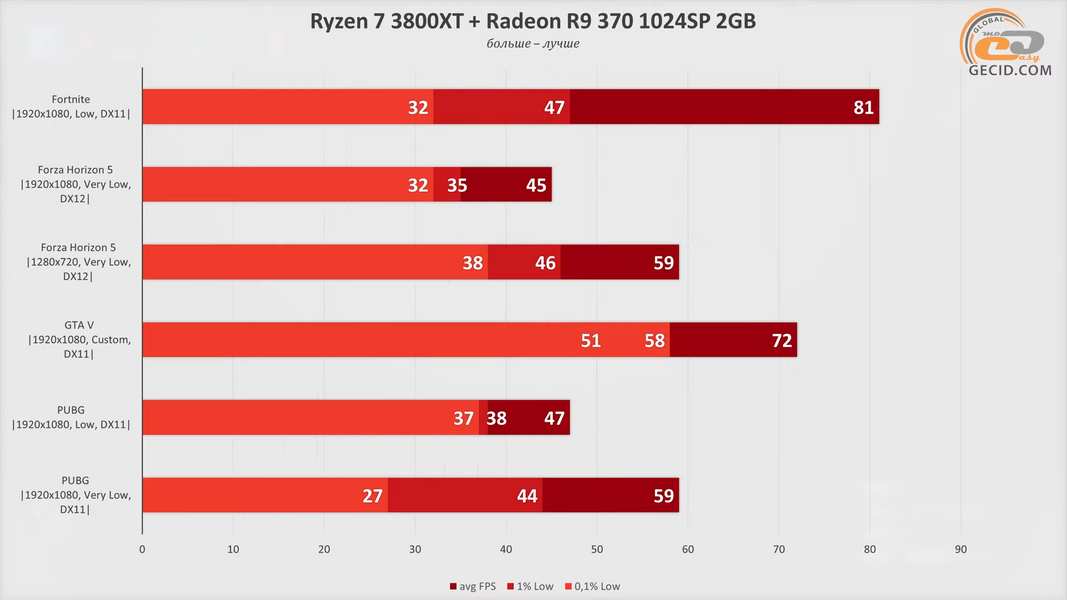 Ожидаемо, лучше всего Radeon R9 370 показала себя в Dota 2, Counter-Strike: Global Offensive, Fortnite, World of Tanks и Warframe. При этом также пользователи могут сыграть с её помощью в Escape From Tarkov, PUBG и ARK: Survival Evolved.