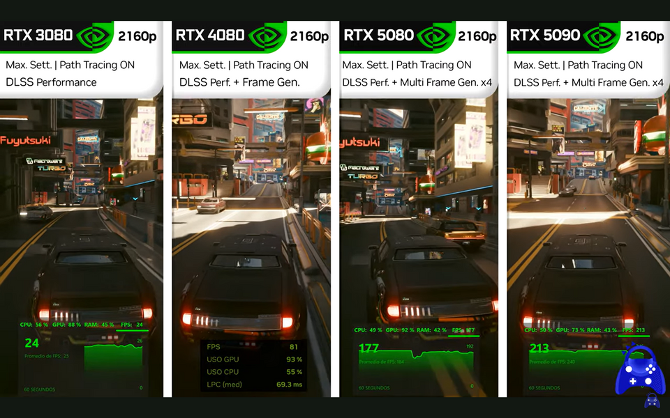 В Cyberpunk 2077 на RTX 5080 и 5090 можно достичь 200 fps даже в 8K на максимальных настройках.