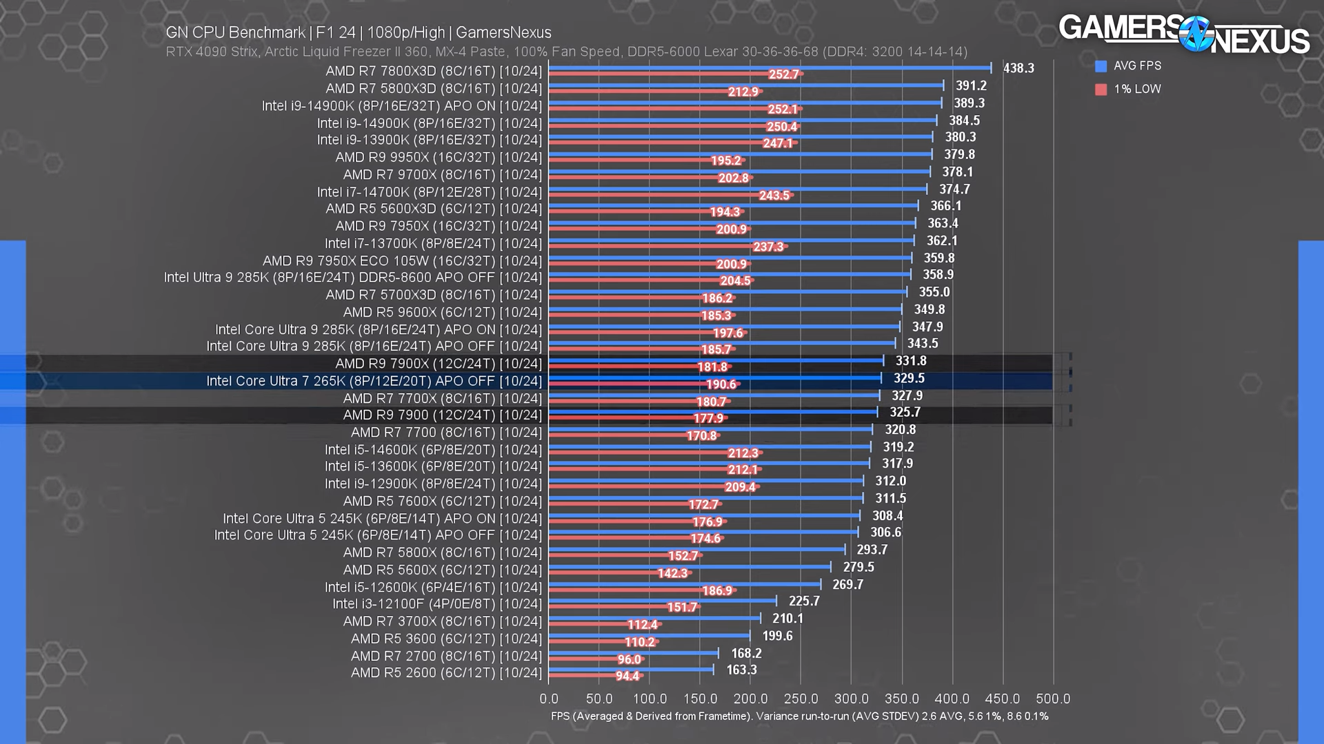 Core Ultra 7 265K также разочаровал по показателю эффективности, демонстрируя меньшее количество кадров на ватт по сравнению с процессорами AMD последних трёх поколений.