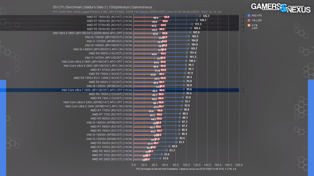 В Final Fantasy XIV: Dawntrail отставание от Ryzen 7800X3D составило целых 33%, а в Baldur's Gate 3 — 24%. В некоторых случаях чип уступает даже более старым моделям, таким как Ryzen 5700X3D.
