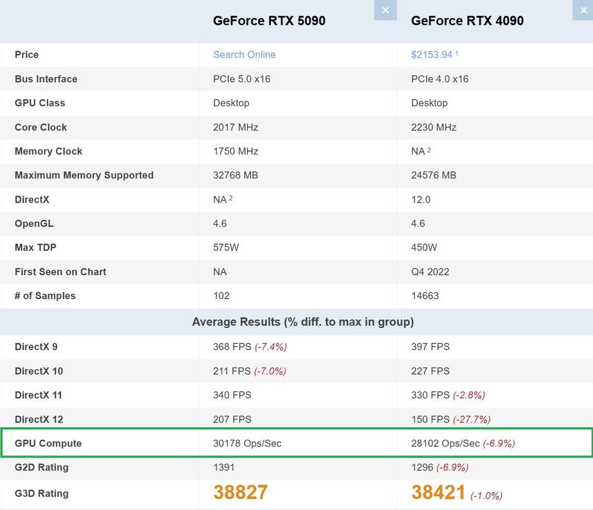 Ранее карта уступала RTX 4090 (28 240 Ops/Sec), но теперь демонстрирует ожидаемую мощность.