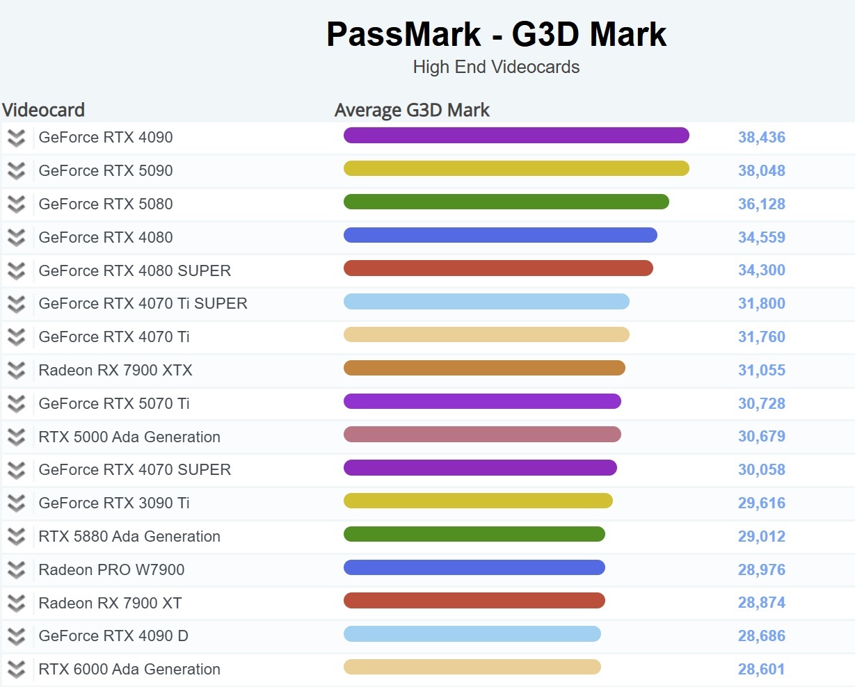 RTX 4090 сместила RTX 5090 в недавнем тесте производительности PassMark