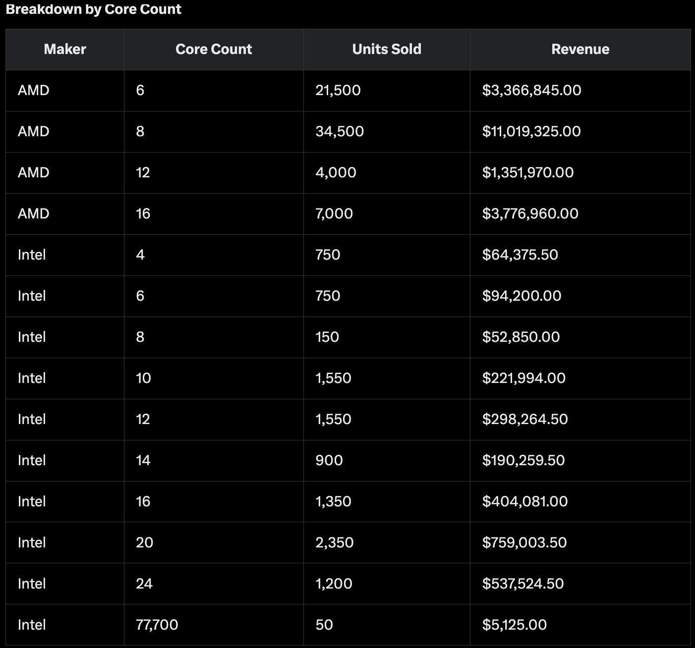 Всего было реализовано около 67 000 чипов Ryzen, тогда как Intel удалось продать лишь порядка 10 600 процессоров.