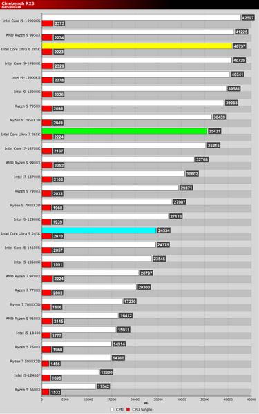 В тестах Cinebench R24 новые процессоры немного обогнали своих предшественников, а в Cinebench R23 их производительность оказалась на прежнем уровне.