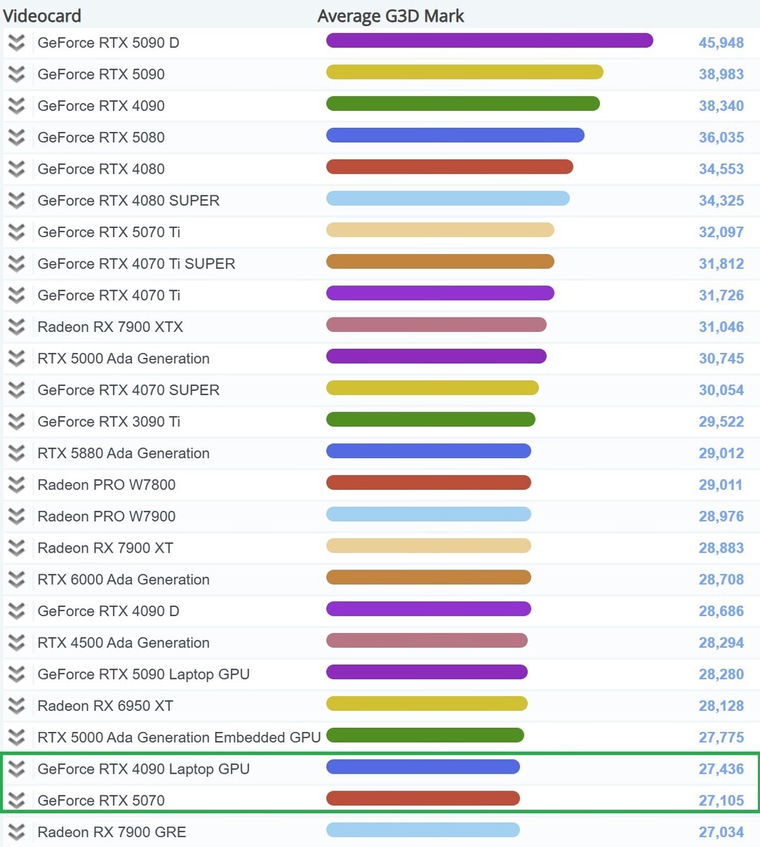 Видеокарта RTX 5070 и вправду сравнима с RTX 4090… но ноутбучной и в G3D Mark