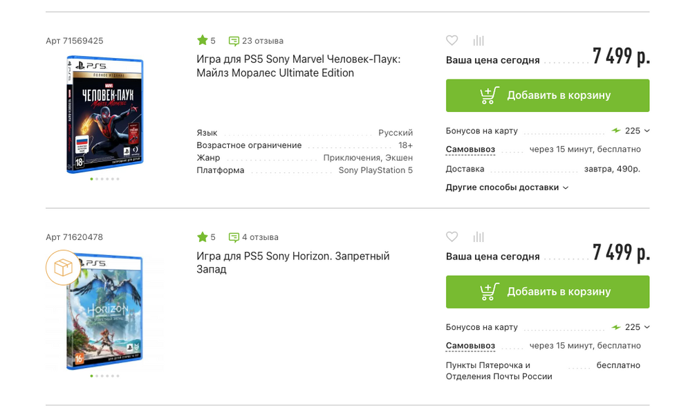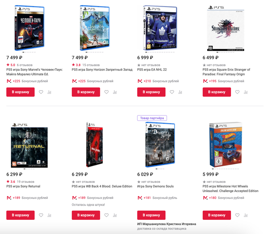 Например, ритейлеры продают Horizon Forbidden West за 7999 рублей, один из главных эксклюзивов Sony PlayStation 5 вышел в феврале. Но цены выросли и на более старые тайтлы: прошлогодние Spider-Man Miles Morales и ремейк Demon's Souls предлагают купить за те же 7999 рублей.