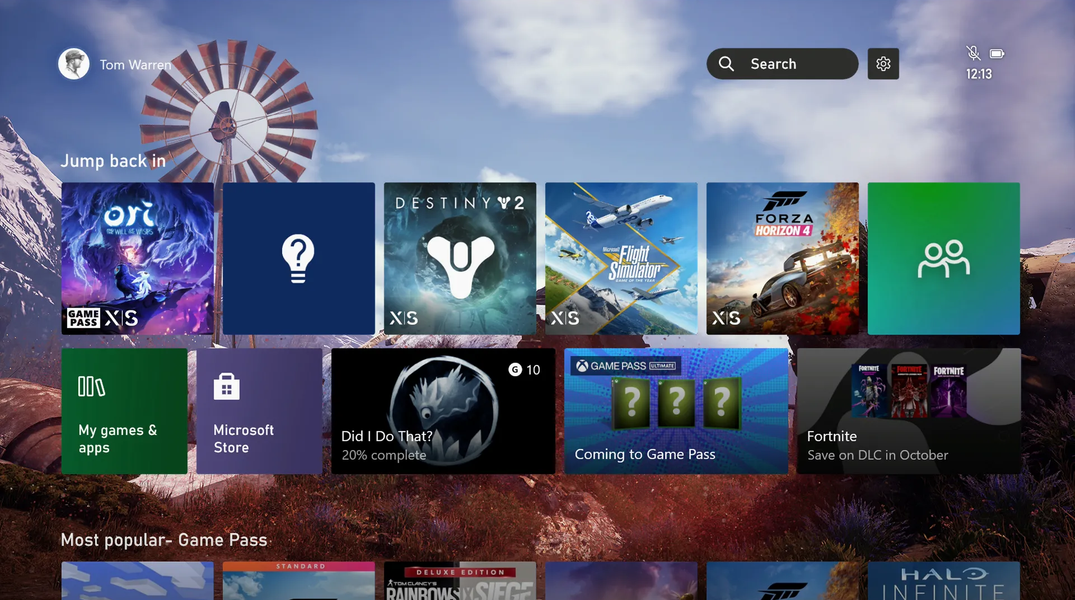 В свежей версии Xbox Home UI плитки с приложениями и играми перемещены ниже — этим дизайнеры добились освобождения места для фоновых изображений. Размеры плиток также уменьшились, а новая функция обновления фона при наведении на определённые игры и приложения делает дизайн ещё более привлекательным.
