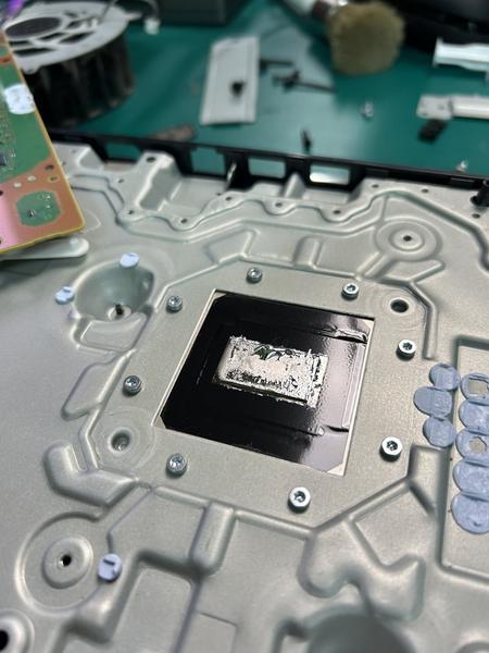 Modyfikatorcasper поделился своим опытом работы над проблемной консолью PS5 Slim, которая была приобретена менее полутора лет назад. Он отметил, что у PS5 Slim, которая эксплуатировалась менее полутора лет и всегда стояла вертикально, возникла та же неисправность. На кристалле APU остались следы высохшего и окисленного жидкого металла, которые образовали пятно или сгусток, полностью потерявший теплопроводность.