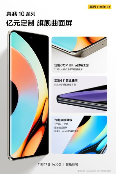Добиться подобного удалось при помощи новейшей фирменной технологии упаковки OLED-панели. При этом, как сообщают в Realme, этот дисплей также получит 10-битную цветность и частоту обновления 120 Гц.