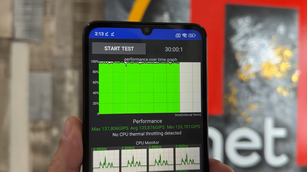Ёмкость аккумулятора у Redmi 13C — 5000 мА*ч, в тесте батареи он выдал 6 часов 53 минуты работы экрана. Заряжается он также 2 часа 17 минут.