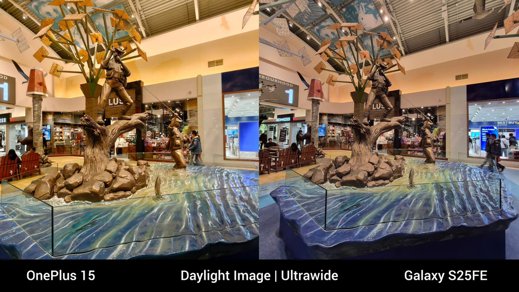 Всё не так однозначно, как кажетсяПри съёмке фото на сверхширик угол обзора у Samsung Galaxy S25 FE немного шире, чем у OnePlus 15. Также у Samsung более естественные цвета.