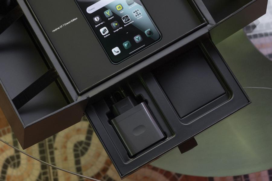 Стильная штуковина, этого не отнятьrealme оформили партнёрство с Aston Martin надолго — теперь они будут совместно создавать дизайн премиум-версий своих устройств (не только смартфонов). GT 7 Dream Edition получил дизайн в стиле болида Формулы-1: тут и фирменный зеленый цвет британцев, и плавные линии с отсылкой к аэродинамике гоночных болидов, и цветная полноценная эмблема Aston Martin. Чехол её, кстати, не закрывает.