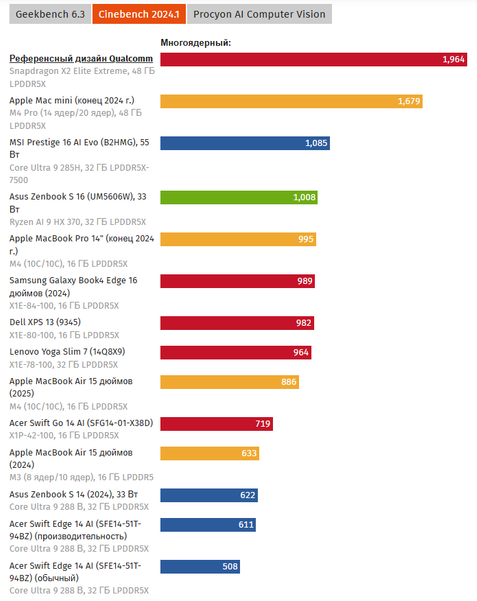 Snapdragon X2 Elite Extreme оказался мощнее Apple M4 Pro, Intel и AMD в бенчмарках