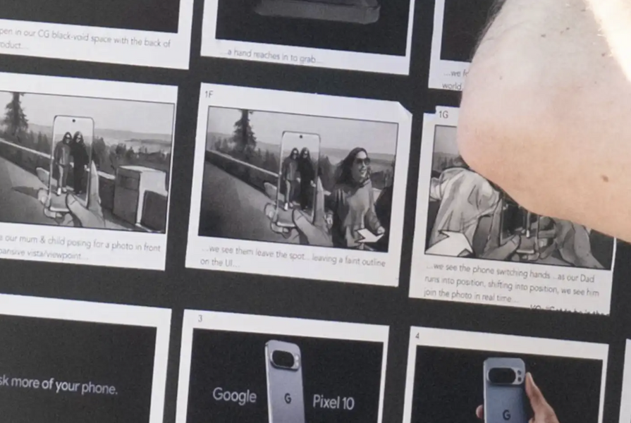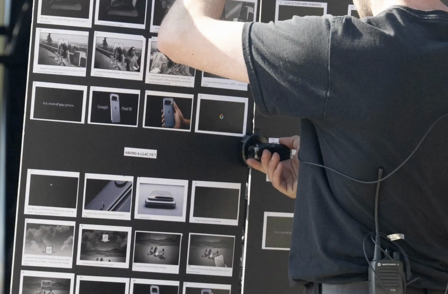 На месте съемок были видны раскадровки с логотипом Google и надписью «Pixel 10». Судя по ним, слоган новой серии звучит как «Ask more of your phone» — «Требуй от телефона больше».