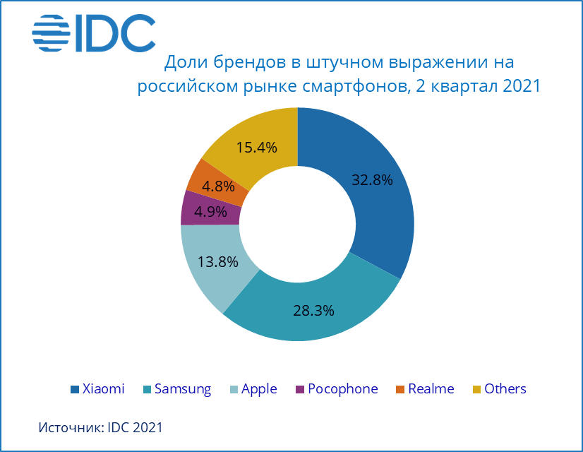 Тем не менее к премиальным смартфонам интерес не ослабевает. IDC приводит рыночные доли производителей: Samsung и Apple остаются востребованными.