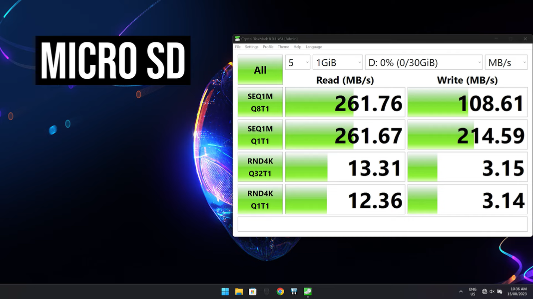 Все порты расположены на задней стороне ноутбука. Это Micro SD, разъём для наушников 3,5 мм, USB 3.2 Gen 2 Type-C, два USB 3.2 Gen 1 Type-A, Power Input, Mini Displayport 1.4, HDMI 2.1, Thunderbolt 4.