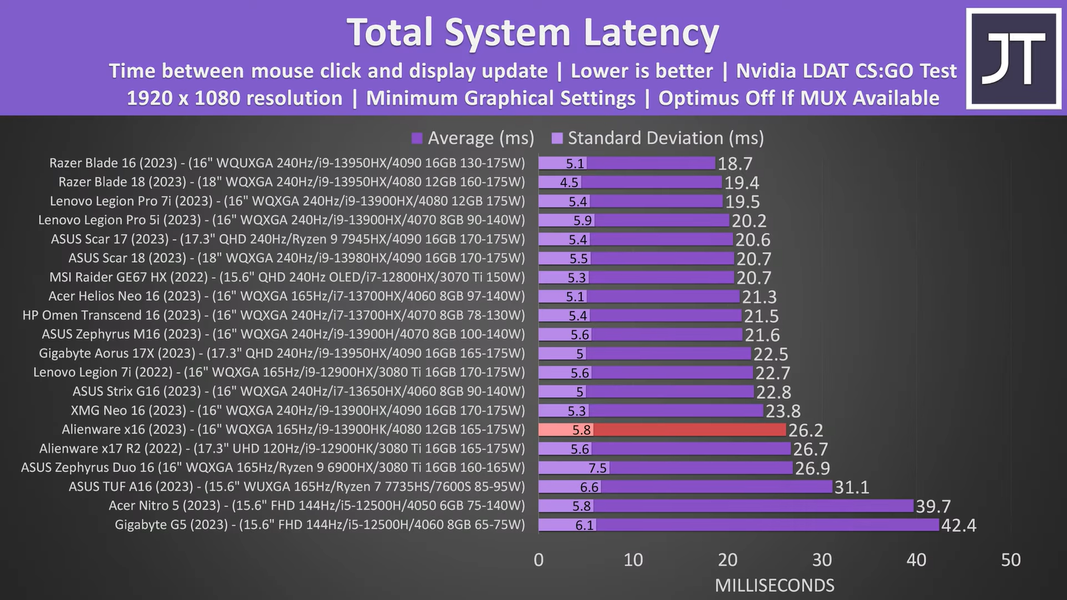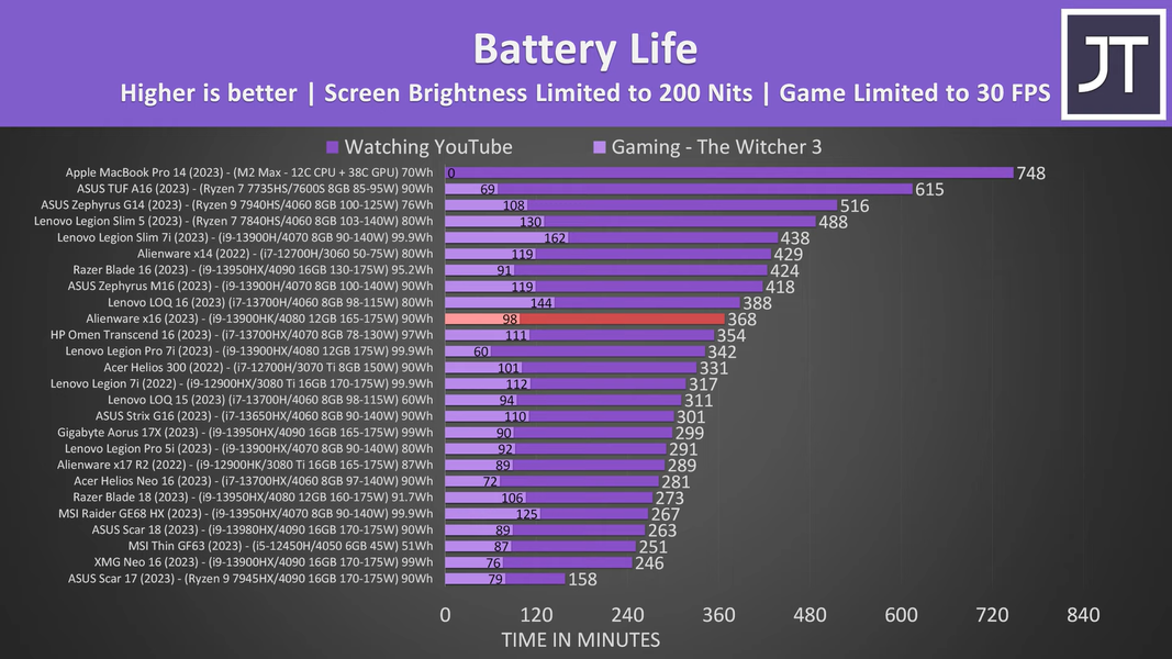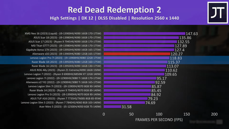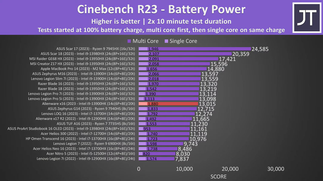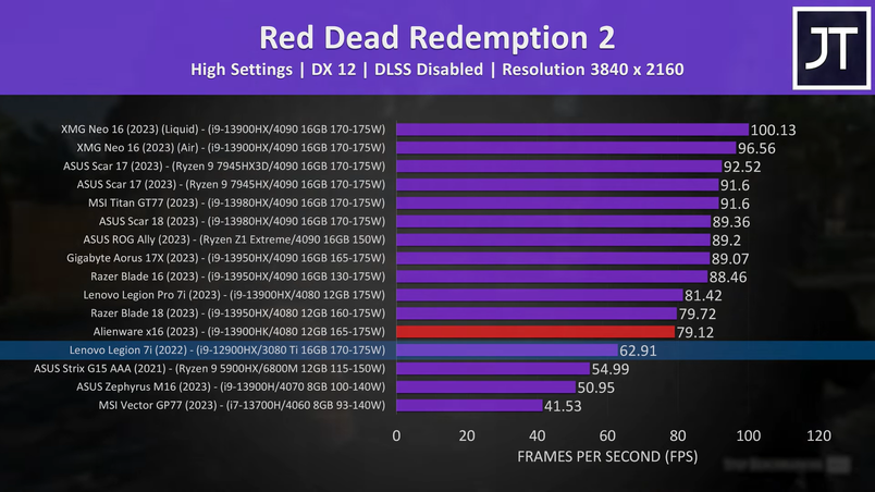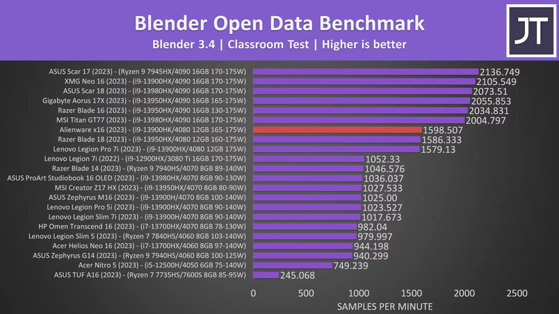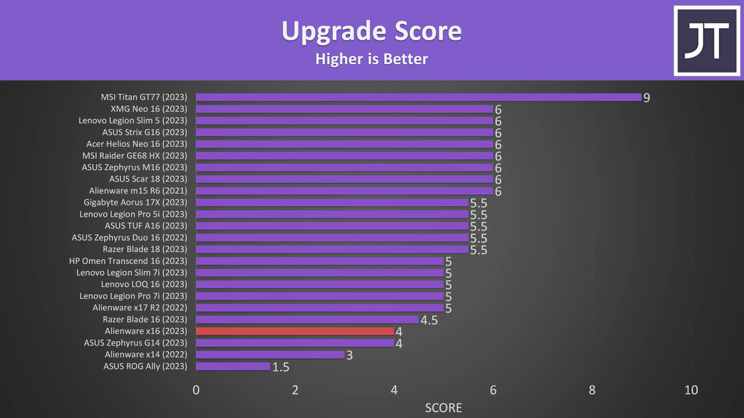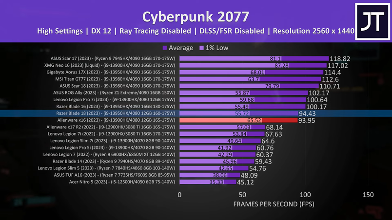 В США сейчас можно купить Dell Alienware x16 в базовом варианте - за 1800 долларов. Но на этой версии будет стоять RTX 4050. Модель, которую тестировали на канале Jarrod'sTech, стоила при этом 3000 долларов, а максимальная конфигурация с RTX 4090 - на 400 долларов дороже.