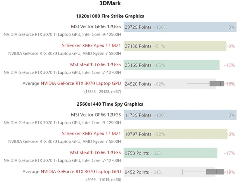 Разогнанная NVIDIA RTX 3070 Ti для ноутбуков оказалась слабее упрощённой RTX 3070 для ПК