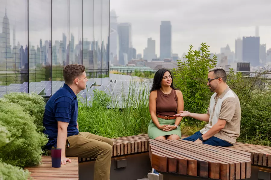Дизайнеры также добавили гибкие совместные пространства и зоны для общения на открытом воздухе, сохраняя при этом оригинальные железнодорожные насыпи для использования в качестве газонов. Максимальное использование видов на реку Гудзон также было в приоритете.