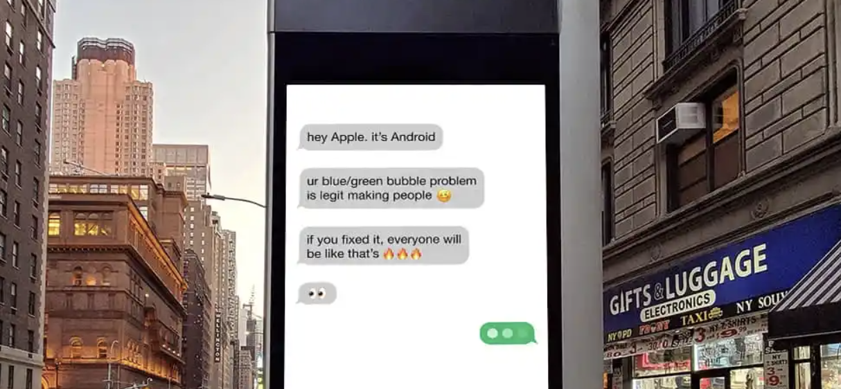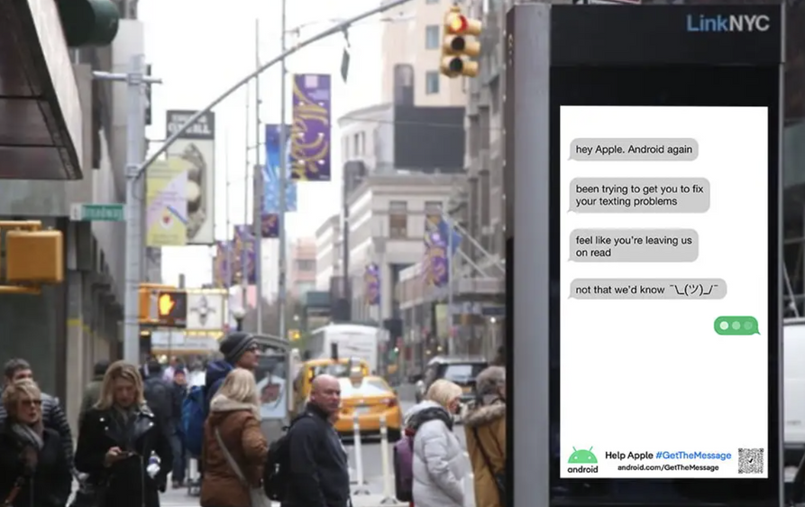 Google продолжает шутить над Apple из-за устаревшей технологии SMS. Уже на улицах городов