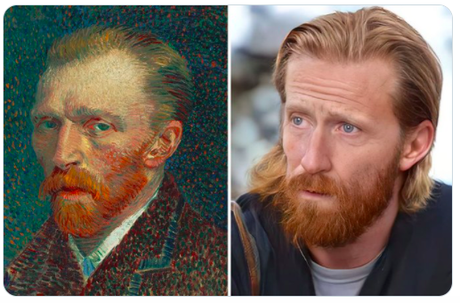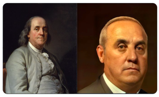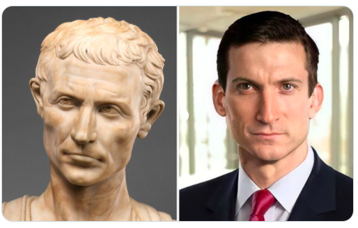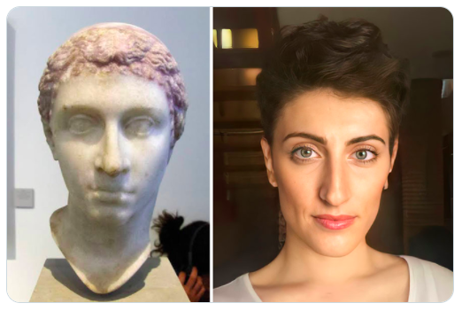 За основу художник, конечно, берёт картины и статуи. Затем он подбирает фото людей, которые похожи на исторических личностей. А после этого накладывает их на изображения исторических персонажей с помощью нейросети Artbreeder. Получившееся изображение художник «подтягивает» в FaceApp.