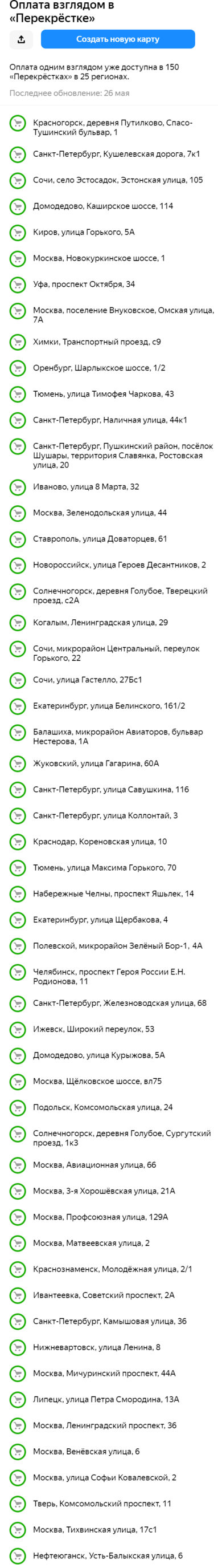 Полный список магазинов с поддержкой нового сервиса доступен в виде специального слоя в картографическом приложении от Яндекс.