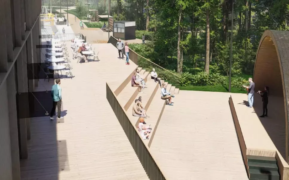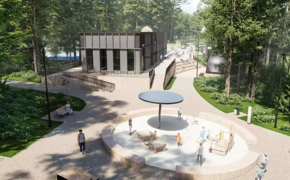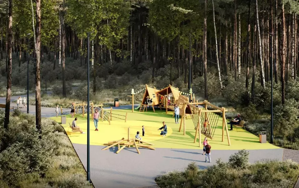 В лесопарке появится новое здание с туалетом, комнатой матери и ребенка и постом охраны. По всей территории установят дополнительные светильники и камеры видеонаблюдения.