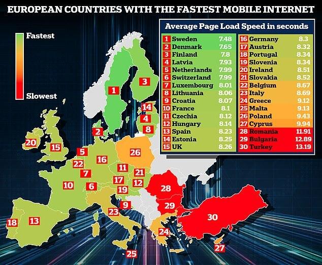 По скорости мобильного интернета Великобритания оказалась на 15 месте, настольного — на 17. Время загрузки британского интернета оказалось на секунду дольше, чем в лидирующих странах. Так, на первом месте во всех тестах оказалась Швеция.