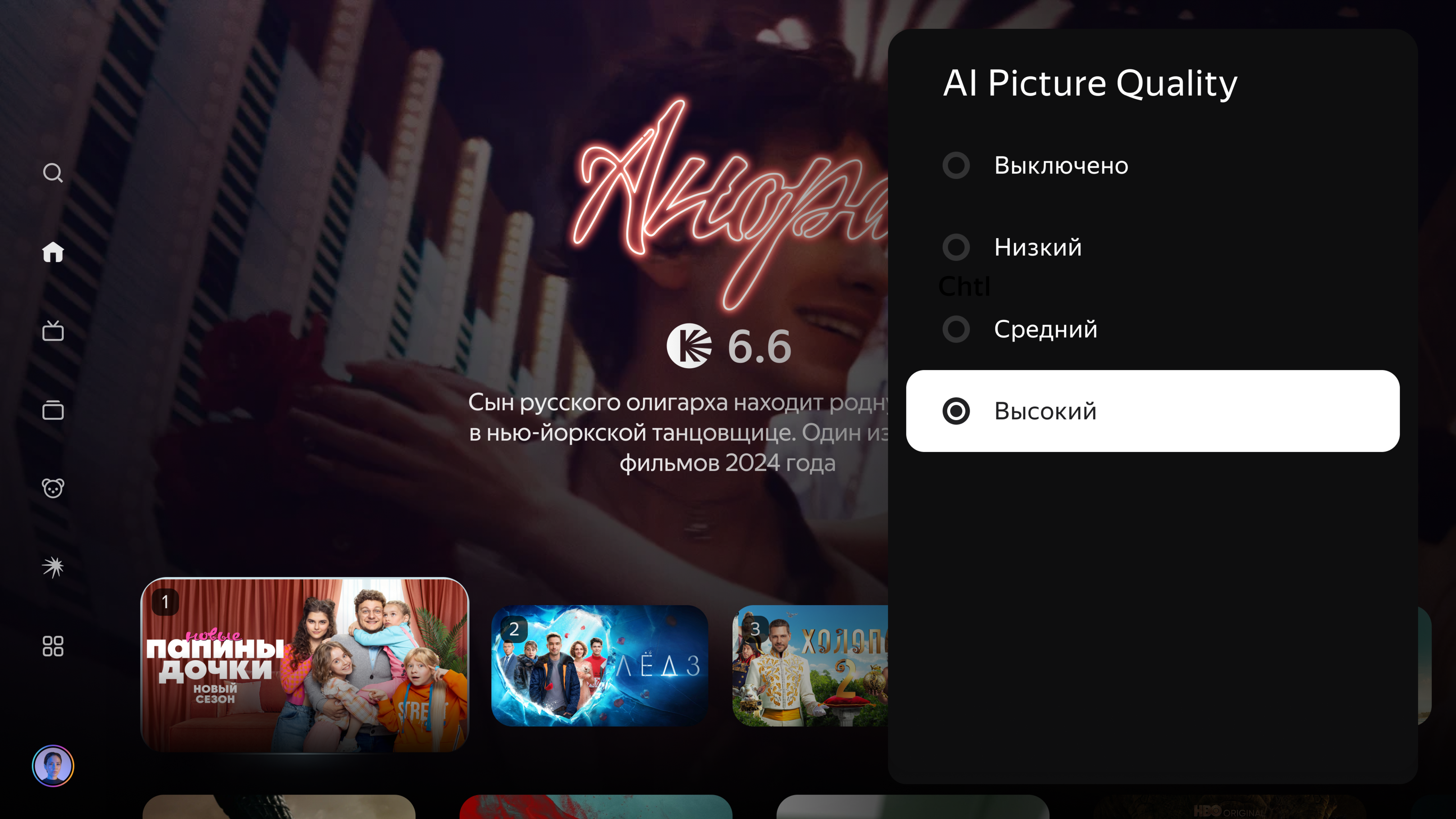 Технология AI Picture Quality анализирует картинку в реальном времени и автоматически регулирует цветопередачу, яркость и контрастность. Это позволяет делать изображение более четким и насыщенным. Функция работает со всеми видеофайлами, кроме защищенных от копирования.
