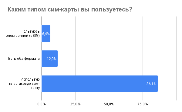 Несмотря на рост интереса к eSIM, в России сейчас только около 1 миллиона таких карт. Основным барьером для перехода остаётся отсутствие подходящих смартфонов, поддерживающих эту технологию.
