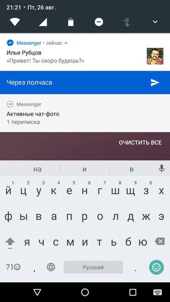 Уведомления теперь тоже стали более полезными. Вместо «у тебя тут два сообщения, не скажу, от кого, пока не перейдёшь в программу» есть клавиша для того, чтобы развернуть всё, что успело прислать приложение. Во всевозможных чатиках можно даже отвечать прямо из строки уведомлений. Получается менее навязчиво, чем всплывающие окна, которыми мы довольствовались прежде.