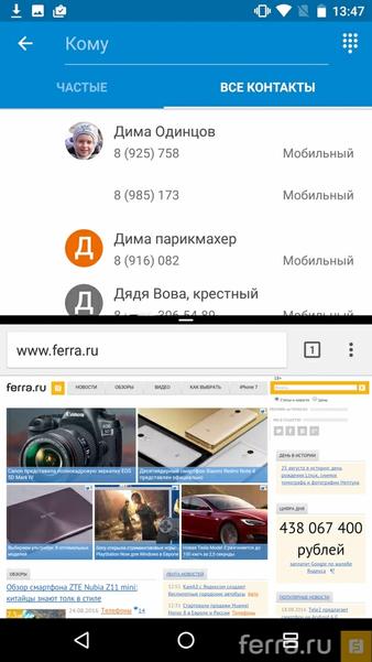 Спустя годы после того, как эту функцию начал «колхозить» в своих смартфонах Samsung, Google сами внедрили поддержку нескольких окон в Android. По долгому нажатию на «квадратик» (экранную клавишу списка задач) экран в смартфонах делится пополам, и два приложения работают параллельно. Не то, чтобы Android располагал к такому режиму работы, но пусть будет. Тем более, что между двумя окнами можно перетаскивать файлы. То есть, забросить файл из галереи в мессенджер или YouTube стало проще.