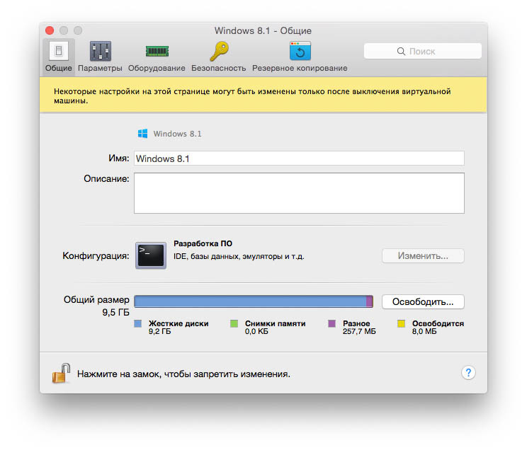 В настройках виртуальной машины нужно будет выбрать, сколько места вы выделяете под систему. Тут же настраивается и оборудование. Для пользователей Pro Edition доступно 64 Гбайт виртуального ОЗУ и 16 виртуальных процессоров, так что можно будет запусать даже особо ресурсоёмкие программы. Но конечно, всё зависит в первую очередь от вашего компьютера, виртуальная машина не сможет работать лучше и быстрее его.