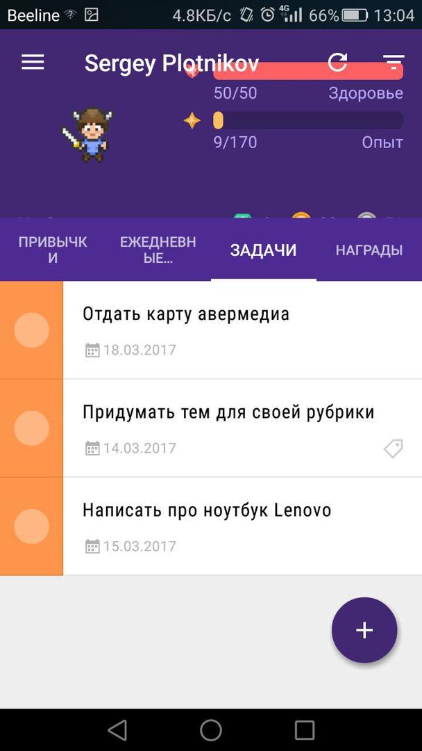 По сути, этот сервис — просто менеджер задач, но многое взято из игр жанра RPG. Вас ожидает не просто монотонное вписывание дел, а сражения над монстрами, зарабатывание самоцветов, золота и серебра, создание и персонализация своего персонажа, а также покупка снаряжения вроде деревянных доспехов, зачарованных сундуков и тому подобного. Также примечательной особенностью является наличие отдельной графы для закрепления полезных привычек или отказа от старых.