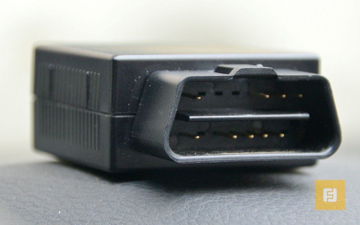 Выглядит гаджет совершенно обычно: пластиковый чёрный корпус размерами чуть больше спичечного коробка. На корпусе можно увидеть лишь парочку индикаторов, которые мигают во время работы, разъём для подключения к диагностическому порту автомобиля и порт microUSB для настройки и отладки устройства, но пользователю он не пригодится.