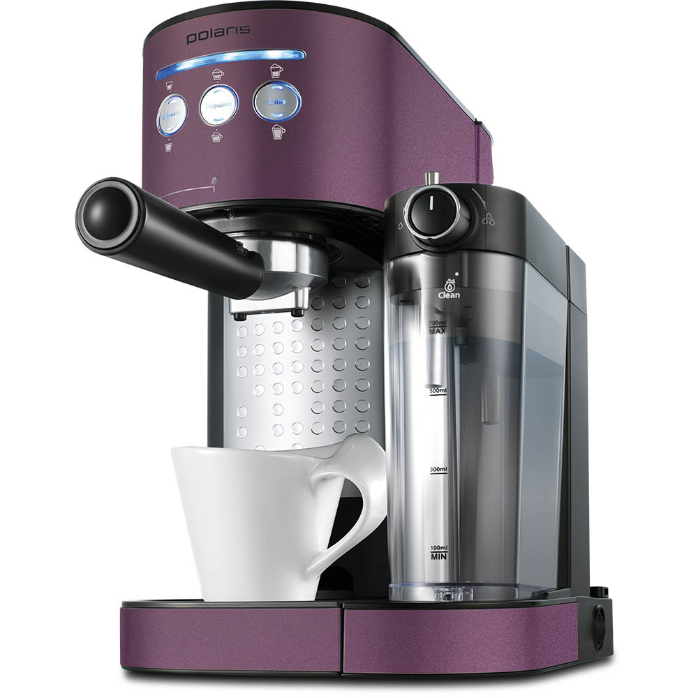 На самом деле моделей Adore Cappuccino больше – они похожи, просто выполнены в разных цветах. Это новинки 2016 года. Принцип работы – как у всех кофеварок-эспрессо: в фильтр насыпается молотый кофе, через который потом под давлением 15 бар проходит горячая вода и получается эспрессо. Автоматический капучинатор с емкостью для молока позволяет готовить капучино и латте. На панели управления есть соответствующие кнопки – латте, капучино, эспрессо, есть регулировка количества пены. Цена вопроса – от 11200 рублей (модель PCM 1525E, фиолетовая) до 16000–20000 рублей (PCM 1522E, под дерево).