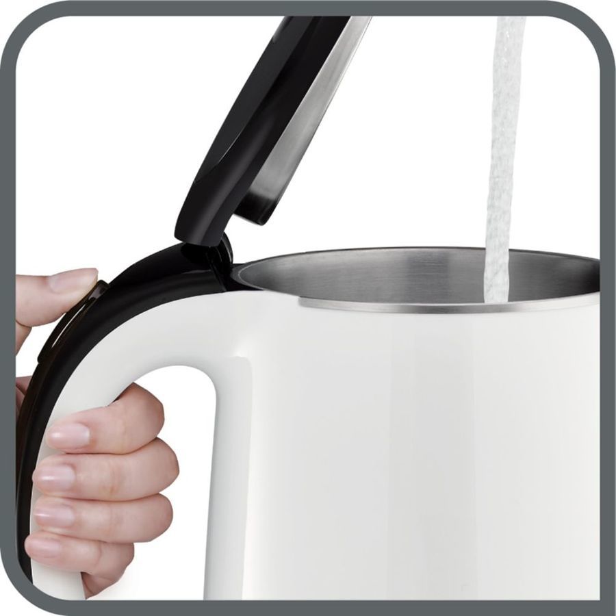 Возьмите чайник в руку, имитируйте движения, когда вы наливаете воду. Представьте, что с водой чайник будет на килограмм или полтора тяжелее, а пользоваться им будут ваши домочадцы — кто-то из них слабее, чем вы. Кисть не должна испытывать сильного напряжения, выворачиваться, это бывает, когда форма ручки не эргономична, когда она неправильно расположена по отношению к корпусу, когда она слишком тонкая сверху и утолщена внизу. От формы ручки зависит, как нагрузка будет распределяться на кисть и запястье. Лучше, если утолщение сверху и ручка начинается прямо у крышки, и определенно надо «пробовать».