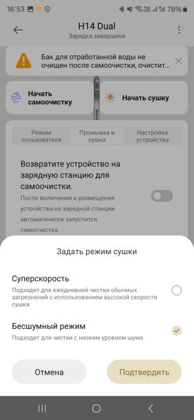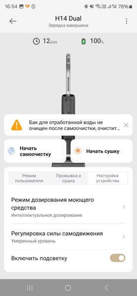 Dreame H14 Dual также позволяет подключить его по Wi-Fi к приложению Dreamehome, как и роботы-пылесосы компании, но делать это не обязательно. Разве что, все подробные настройки именно там, с кнопок на самом пылесосе толком ничего не настроишь.