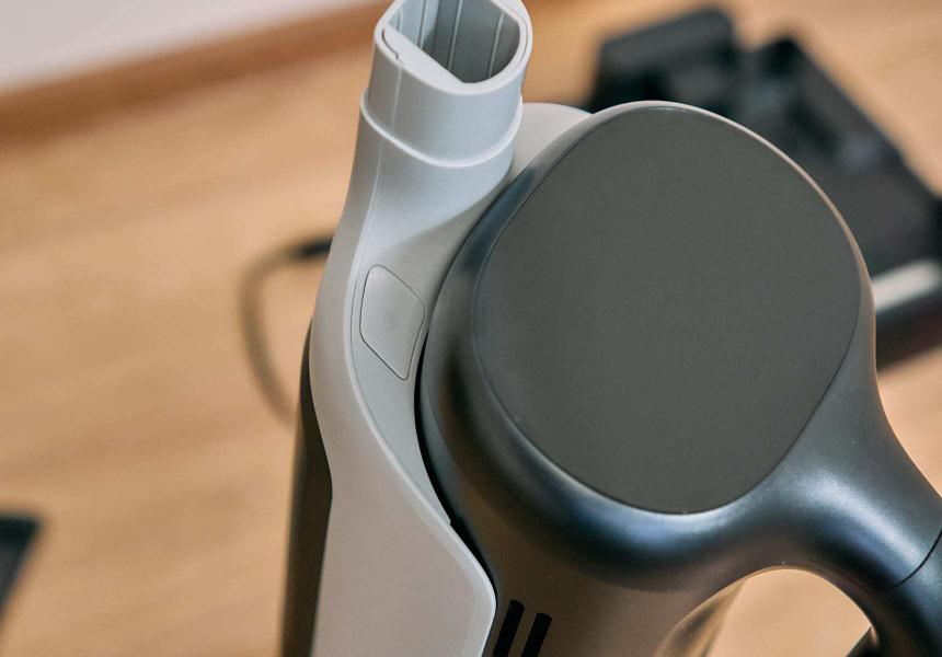 К сожалению, с этой трансформацией, как и в H12 Dual, снова магии не случилось, но о функциональности мы поговорим ещё позже. Здесь пока лишь отмечу слабое крепление штанги пылесоса для сухой уборки на соответствующей ей площадке. У H12 Dual крепление было лучше. А тут у меня проезжает рядом робот-пылесос, и в некоторых случаях роняет штангу пылесоса без особого даже нажима.
