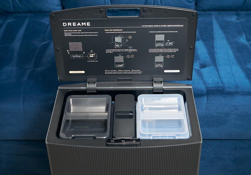 Также у робота есть базовая станция (база), на которую он возвращается, и с которой начинает любой цикл уборки. У более простых роботов на станции происходит только зарядка, но Ultra-версии роботов-пылесов Dreame работают с базой более плотно.