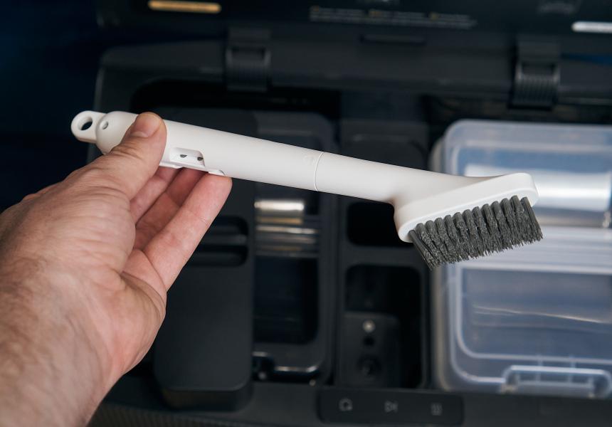 Ну и ещё в базе нашли место для щётки. Полезно, а то я постоянно забывал, куда положил щётку от прошлогоднего L10. Баки для воды, кстати, тоже стали крупнее.
